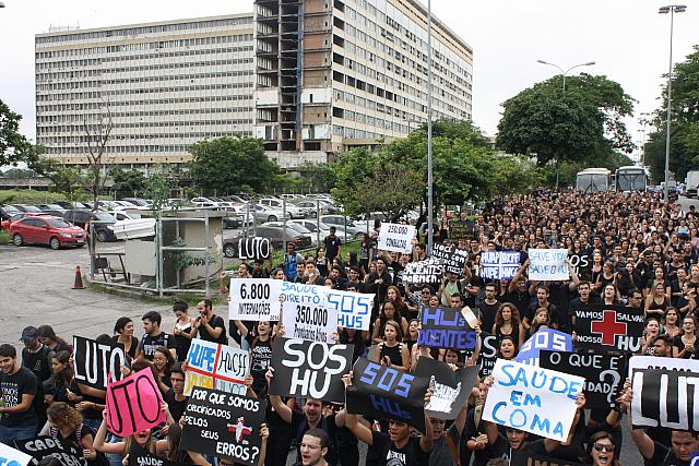 “Há estudantes no R3, último ano da residência, sem operar. Isso é um desrespeito com a formação dos nossos médicos. Como um estudante que só tem os próximos quatro meses para acabar seu ciclo de residência vai passar esses últimos meses sem operar ninguém? Como esses médicos vão exercer a profissão fora daqui?”, indagou Viviane Leite, residente e integrante do movimento Salve HU, criado em 2012.