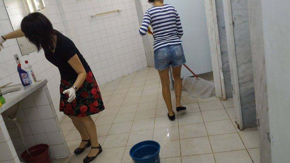 A crise da limpeza atinge o polo da UFRJ em Xerém (Caxias). As fotos registram os esforços de estudantes em mutirão para manter condições mínimas de higiene – diante da paralisação dos serviços dos terceirizados que estão também sem receber salários.
