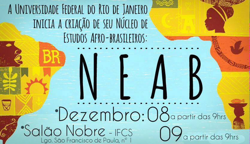 Nestes dias 8 e 9, ocorrerá o primeiro evento do Núcleo de Estudos Afro-Brasileiros da UFRJ. A instância foi concebida como espaço para desenvolvimento de ações acadêmicas de ensino, pesquisa e extensão afinadas com o combate às desigualdades de raça, gênero, classe, sexualidade e outros marcadores sociais.