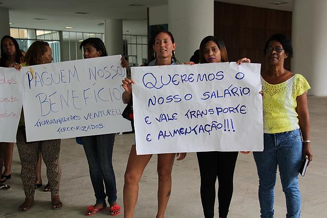 Trabalhadores da empresa Venturelli, que não recebem há vários meses, protestaram na reitoria. Termo de Ajuste de Conduta não foi cumprido pela firma