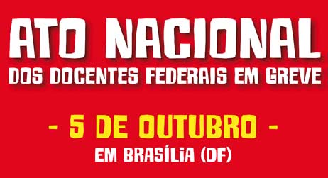 Professores federais em greve realizam ato em frente ao Ministério da Educação, nesta segunda-feira (5/10), a partir das 9h. O Dia Nacional de Luta e Mobilização em Defesa da Educação Pública foi decidido para marcar a data em que deve acontecer a reunião entre o Comando de Greve dos docentes e o ministro da Educação. A reunião foi agendada pelo MEC em 24 de setembro — antes, portanto, da reforma ministerial que excluiu Renato Janine Ribeiro da pasta. Além do ato em Brasília, deverão ocorrer manifestações nas universidades.