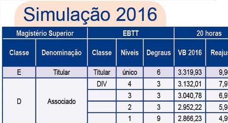 Reivindica-se que, a partir de 01/01/2016, o VB para DE corresponda a 1,55 vezes o de 40h e que isto conste de acordo e de lei (veja simulação para 2016 nesta página). E que se avance progressivamente na relação entre os VB de 40h e de 20h, até que o de 40h corresponda ao dobro do de 20h.