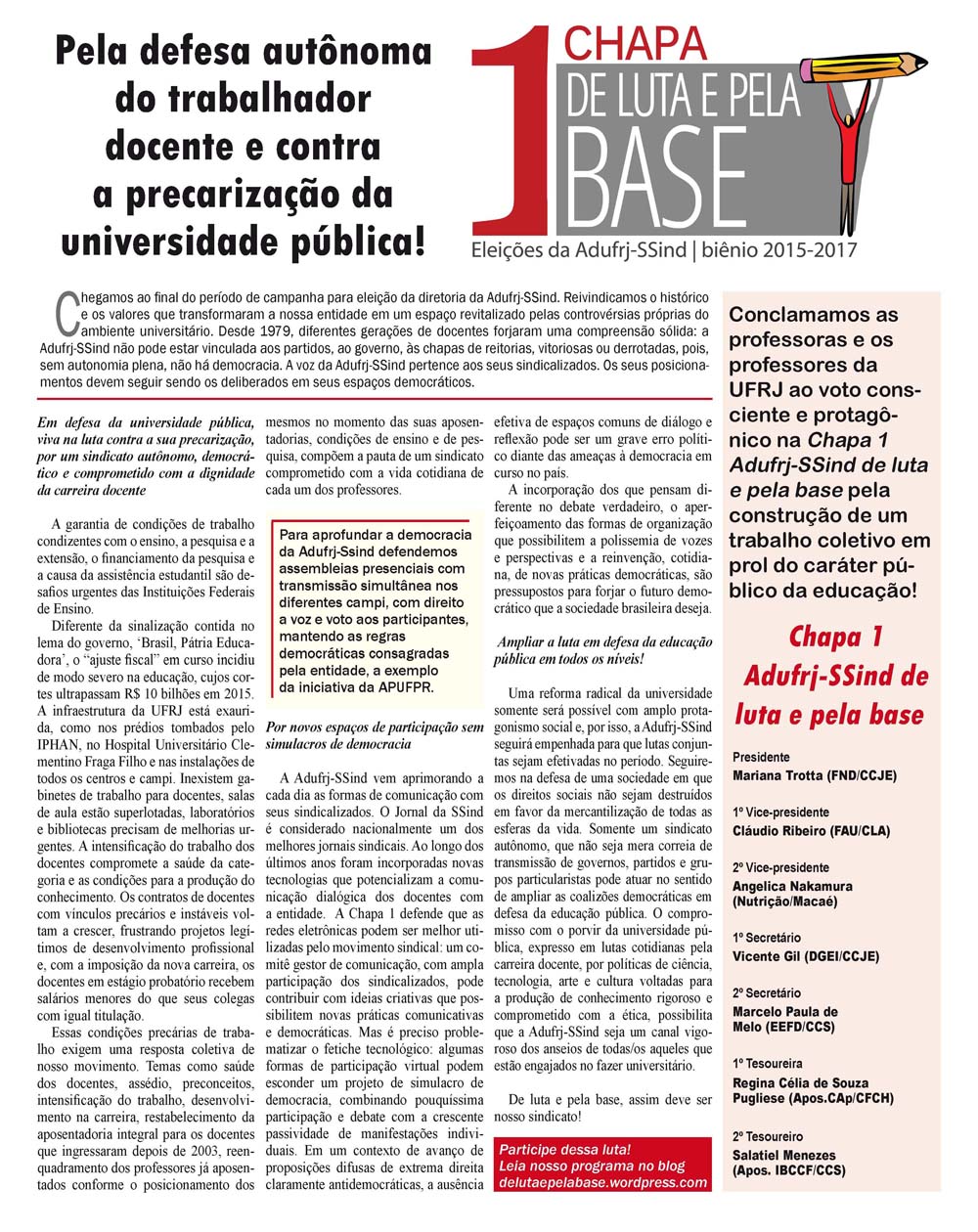 Em relação ao material remetido para a casa dos sindicalizados (via correio), houve uma ampliação dos horários de votação das eleições para a Diretoria e o Conselho de Representantes da Adufrj-SSind, que acontecem nesta quarta-feira (9/9) e quinta-feira (10/9).