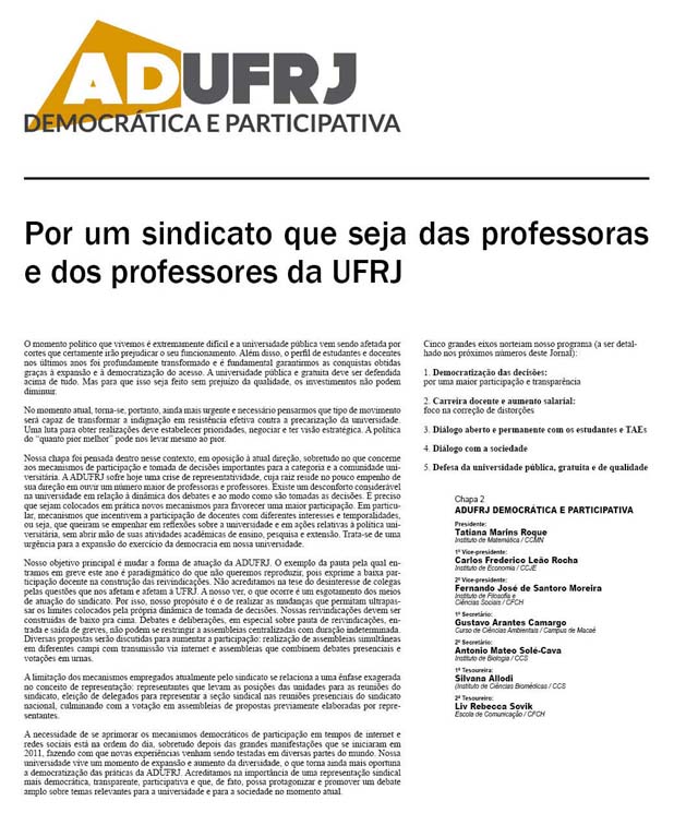 A Assembleia Geral Docente convocada pela Adufrj-SSind decidiu ampliar a pressão em Brasília. Uma caravana será enviada à capital federal nos dias 27 e 28 de agosto. Nos dois dias haverá mobilizações de todo o funcionalismo Federal.