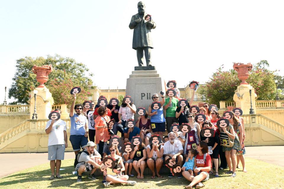 Além dos materiais explicativos do movimento, os docentes distribuíram centenas de máscaras com rosto da Mafalda, personagem de Quino, que fez sucesso entre as crianças. “A Mafaldinha é símbolo do protesto bem humorado”, explicou também ao microfone, Marcelo Melo (EEFD). “Estamos aqui com ela para defender condições dignas para trabalhar. E também para que o Estado cumpra seu papel de oferecer educação de qualidade a todos que querem estudar independentemente da idade. A universidade é um direito de todos”, disse.