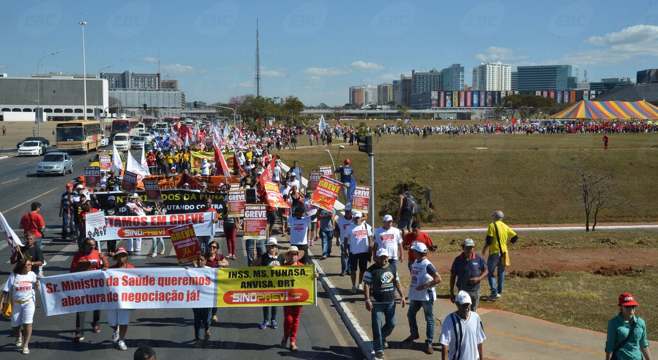 A Marcha a Brasília reuniu servidores de diversos estados e também de categorias em greve, como funcionários da Previdência Social, professores universitários e integrantes dos quadros técnico-administrativos das instituições federais de ensino superior. (Fonte: Agência Brasil)