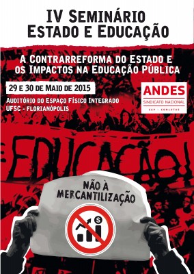 O Andes-SN divulgou, por meio de circular, o Caderno de Textos do IV Seminário Estado e Educação. Com o tema “A contrarreforma do Estado e os impactos na educação pública”, o Seminário acontecerá nos dias 29 e 30 de maio na Universidade Federal de Santa Catarina (UFSC), em Florianópolis (SC). O Caderno de Textos estará disponível aos participantes do seminário no local do evento e aos demais sindicalizados, na página do Sindicato Nacional.