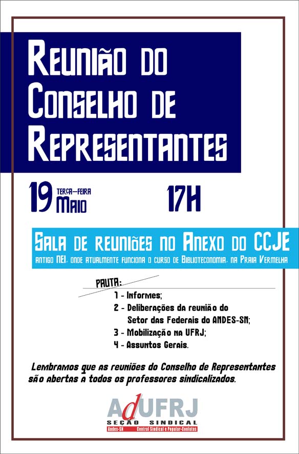 Na UFRJ, depois de ampla discussão sobre a conjuntura de sufoco nas universidades federais e no país, além do indicativo de greve, os docentes aprovaram a realização de reunião nas unidades para organizar a mobilização. Outra assembleia será convocada para avaliar o que for decidido na reunião do Andes-SN.