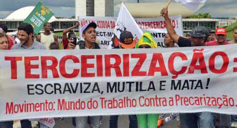Em resposta à ameaça de arrocho salarial e de retirada de direitos por parte do governo, os servidores públicos federais realizaram uma Jornada de Lutas, entre 7 e 9 de abril. A Câmara dos Deputados, no entanto, foi indiferente à mobilização e desferiu mais um grave ataque aos trabalhadores: durante este período, os parlamenteres aprovaram a base do projeto (PL 4.330/2004) que amplia a terceirização no país.