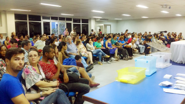 O auditório Cláudio Ulpiano ficou lotado para ouvir as propostas das três chapas concorrentes, em 31 de março. E, como nos debates anteriores, após as apresentações iniciais, os candidatos responderam a perguntas entre si e, depois, do público, composto por estudantes, técnicos-administrativos e professores.