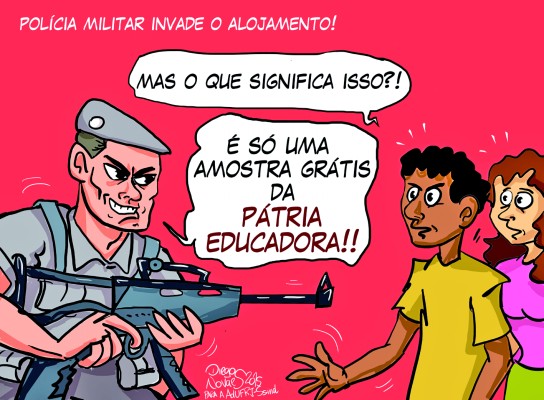 Dois policiais do 17º Batalhão da Ilha do Governador, armados com pistolas e fuzis, entraram no prédio do alojamento da UFRJ na tarde de sábado (21 de março) sob a alegação de que iriam utilizar o local como ponto estratégico de observação da área.