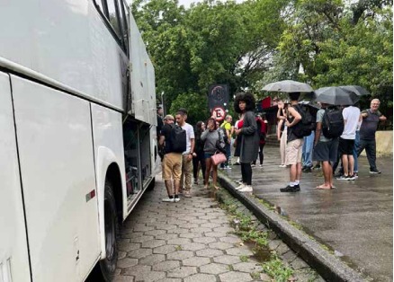 Os atos bolsonaristas antidemocráticos interromperam um trabalho de campo do Instituto de Geociências da UFRJ. Trinta estudantes e três professores, que estavam a caminho de Uberaba (MG) em um ônibus e uma van, foram bloqueados na Rodovia Presidente Dutra, em Barra Mansa (RJ), na segunda (31). Hostilizado pelos bolsonaristas, o grupo desistiu de seguir viagem e retornou à universidade no dia seguinte (foto). Em nota, a reitoria repudiou o triste episódio e se solidarizou com os docentes, alunos, motoristas e seus familiares.