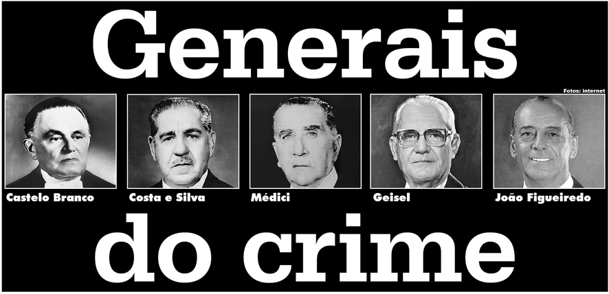 A casta de militares que constituía o comando das ditaduras do Cone Sul entre as décadas de 60, 70 e 80, está na história com as mãos encharcadas de sangue. O poeta chileno Pablo Neruda chamava esses militares de “generais do crime”. Alguns, entre esses comandantes, podem ter se destacado pela voltagem genocida de suas ações. Seria o caso de Pinochet, no Chile, e Jorge Videla, na Argentina. Mas, substantivamente, não há nenhuma diferença entre Médici, Ernesto Geisel, Figueiredo... e aqueles ditadores vizinhos. Agiram, inclusive, em certos momentos, articulados, como ficou provado na Operação Condor.