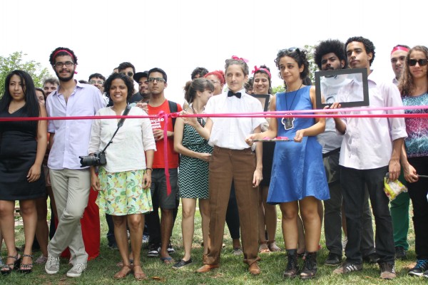 Antes de cortar a faixa rosa amarrada entre duas árvores e dar, por fim, inaugurado o prédio virtual, a professora Rogéria de Ipanema lembrou a importância histórica da escola. “Estamos ansiosos para conhecer as nossas novas dependências, nossos novos lugares e locações para a produção do ensino artístico, como é feito desde 1816 quando D. João abre, com um decreto régio em 12 de agosto, a Escola Real de Ciências, Artes e Ofício. Nossa escola está agora de portas e ateliês abertos para a comemoração de seu bicentenário”, discursou, brincando com a situação de a edificação não ter portas, de não ter nada.