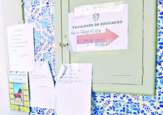 A unidade está repleta de avisos improvisados, por toda parte, que visam suprir a carência de mão de obra. “Tínhamos duas recepcionistas para dar informações, cobrindo dois pavimentos mais um anexo. Agora estamos com uma”. “Se qualquer autoridade chega à Faculdade de Educação, vai ficar procurando nesses labirintos (do Palácio Universitário)”.