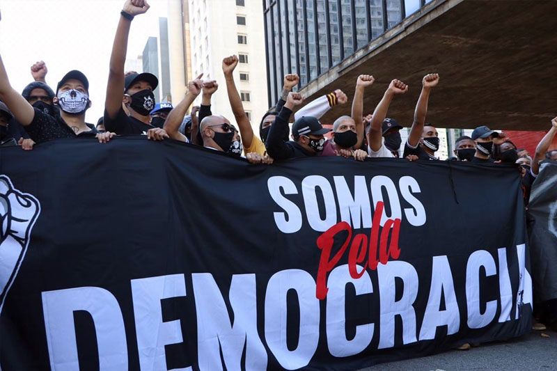 TORCIDAS ORGANIZADAS em todo o país disputam agora outro campo: o político - Foto: OAM SANTOS/FOTOS PÚBLICASQuando o bolsonarismo raivoso retornou às manifestações de rua e começou a pedir o fechamento do Congresso, do Supremo Tribunal Federal e a volta do AI 5, um adversário à altura entrou em campo. Uma rede nacional de torcedores “pela democracia” se articulou para disputar o espaço. E garantiu protestos coordenados, em ao menos 16 cidades desde o domingo, 31 de maio. De lá para cá, dezenas de debates e lives pipocaram nas mídias e redes sociais. E com a iminência de campeonatos sem torcida nos estádios, as chamadas “antifas” entram de vez no jogo político brasileiro. Sem trégua para o autoritarismo.