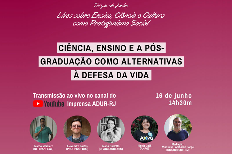 A live do dia 16 foi o terceiro encontro de um ciclo promovido pela AdUFRJ, Associação dos Docentes da Universidade Rural (ADUR), Sociedade Brasileira para o Progresso da Ciência (SBPC), Associação Nacional pela Formação dos Profissionais em Educação (Anfope) e o Fórum Nacional Popular de Educação. As atividades ocorrem todas as terças de junho.