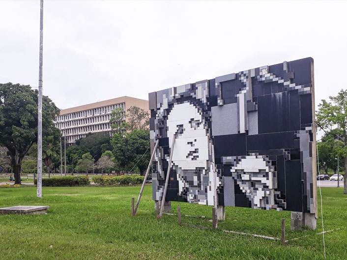 HOMENAGEM: obra entre o CT e a reitoria foi inaugurada em outubro de 2010, na praça também batizada com o nome de Samira - Foto: Kelvin Melo“Samira é e não é. Nenhuma falta ela nos faz, porque está presente desde que se foi. É uma figura no espaço como um quadro que não está na parede”. Assim o ex-diretor da Faculdade de Letras, professor Edwaldo Cafezeiro, descreveu a colega Samira Nahid Mesquita, após seu falecimento. O discurso inspirou a obra a céu aberto localizada na Cidade Universitária para homenagear aquela que foi a primeira decana do Centro de Letras e Artes, entre 1985 e 1989.
