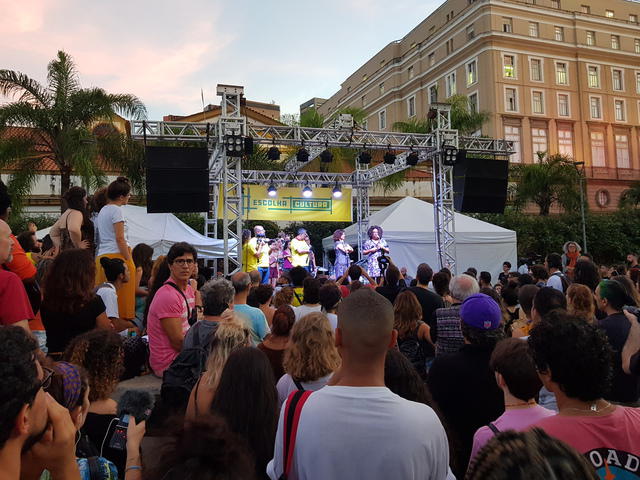 Foto: Arthur BomfimUm protesto contra a censura promovida pelo governo federal em ações culturais mobilizou professores, políticos, artistas e intelectuais, no dia 11. Eles se reuniram em frente ao Centro Cultural do Banco do Brasil, no ato “Escolha Cultura”.