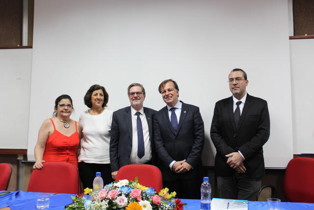 “Um dos maiores desafios que a nossa gestão enfrentará é a luta pelo espaço físico”. Com esse discurso, o professor Wladimir Augusto das Neves assumiu a direção do Instituto de Matemática (IM), no dia 17. Ao lado do vice-diretor Glauco Valle, a nova equipe anunciou que irá trabalhar junto à reitoria para concluir o prédio da unidade. A sede própria é um sonho antigo da comunidade do IM, hoje espalhada pelo CT e pelo CCMN. A construção citada pelo diretor na posse foi iniciada em fevereiro de 2010, perto da Rua Milton Santos, na Cidade Universitária, mas foi paralisada em 2013. Além da obra da sede, a nova diretoria, que encerra o mandato ao final de 2022, prometeu atuar em três frentes de trabalho: realização de projetos de extensão para mostrar a importância da Matemática, fortalecimento das pesquisas dentro da UFRJ e aumentar o número de formandos em licenciatura. Wladimir reafirmou que o instituto conquistou muitos avanços durante a última gestão com resultados de excelência na graduação e a obtenção do conceito 7 em programas de pós-graduação. Agora ex-diretora do instituto, Walcy Santos agradeceu o apoio durante os oitos anos de gestão e a confiança depositada por técnico-administrativos, docentes e estudantes. “O instituto cresceu muito nesses oitos anos. Construímos outras pós-graduações que se consolidaram, mantivemos a excelência na graduação, crescemos o número de docentes – saímos de 110 para 170 –, mas não crescemos em espaço físico”, resumiu a professora. Decana do CCMN, a professora Cássia Turci destacou o protagonismo do instituto na criação de cursos noturnos. “Poucas unidades tiveram coragem de enfrentar os desafios para implementação de cursos noturnos no Fundão. É muito importante a licenciatura, porque a gente fala que a educação é a saída desse país, e isso se dá através da formação de bons professores e pesquisadores”, pontuou. O reitor Roberto Leher, que participou da solenidade, reforçou a importância das universidades públicas na atual conjuntura. No discurso, ele expressou a educação extraordinária oferecida pelo instituto e a importância de levar a Matemática às crianças e jovens do país. “O Instituto de Matemática permite a possibilidade de expansão sobre o pensamento. Em tempos adversos, não podemos deixar nos abater”, afirmou.