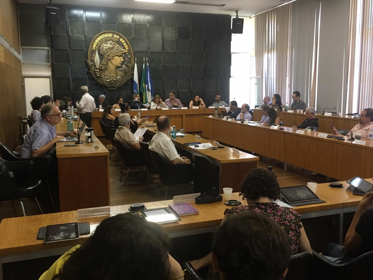 O último Conselho Universitário do ano, dia 20, indicou parte da comissão que organizará a consulta à comunidade acadêmica sobre a escolha do próximo reitor da UFRJ. O Consuni não conseguiu, porém, fechar todo o grupo. A indicação formal dos candidatos a reitor será no Colégio Eleitoral, no dia 30 de abril, por meio de uma lista tríplice. É tradição da UFRJ, porém, realizar uma consulta informal entre estudantes, professores e técnicos-administrativos para a votação das chapas. A comissão organiza a consulta à comunidade acadêmica e define suas datas. O grupo será composto por nove membros titulares e nove suplentes dos três segmentos universitários. Os integrantes representam os colegiados superiores: CEG, CEPG, Consuni e Conselho de Curadores. Era tarefa do Consuni do dia 20 de dezembro indicar seus 8 representantes (4 titulares, 4 suplentes) na Comissão, mas faltaram dois nomes para completar a lista dos professores. Dos quatro docentes que o Consuni tem de indicar, foram escolhidos Maria Cristina Miranda (titular) e José Sergio Leite Lopes (suplente). O assunto deve ser retomado em fevereiro. Entre os discentes, o Consuni indicou as estudantes Nathália Huppes Borges (titular) e Ana Beatriz Dantas Duarte (suplente). Vera Valente (titular) e Gerly Miceli (suplente) foram escolhidas como representantes dos técnicos. VAGAS E NOVO CURSO No Conselho Universitário do dia 18, ficaram definidas as novas regras para a contratação de docentes da UFRJ. Era o que a reitoria esperava para divulgar, entre o Natal e o Ano Novo, um edital para oferta de aproximadamente 40 vagas remanescentes do concurso anterior. A pressa se justifica diante do cenário de incerteza para a universidade pública no governo Bolsonaro. Há o temor de que estas vagas sejam perdidas. O colegiado também aprovou a criação do curso de Engenharia Matemática, vinculado ao Instituto de Matemática.