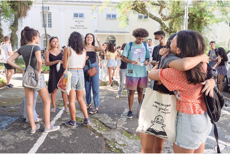 “Aquele tempo todo que passamos distanciados acabou, retomamos aquela vida que ficou parada, adormecida, em suspenso. Eu fiquei eufórica! Para mim, o mais emocionante foi reencontrar alunos para quem dei uma disciplina do primeiro período antes da pandemia. Cheguei em sala e encontrei meus alunos, eu fiquei emocionada em poder ver aqueles rostos de novo. A vida voltou com toda força. Foi um êxtase estar de volta”