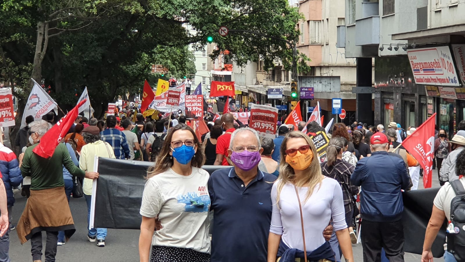As professoras Karine Verdoorn e Mayra Goulart e o professor Ricardo Medronho representaram a diretoria da AdUFRJ no ato público "Pelas liberdades democráticas e em defesa do Serviço Público", realizado em 1º de abril, em Porto Alegre (RS), no encerramento do Congresso do Andes.