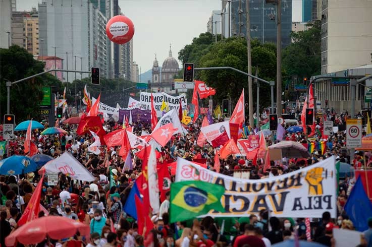 Lutando pela vida, cercado de gente depois de muito tempo em isolamento, com baterias marcando o ritmo da passeata e ajudando a entoar as palavras de ordem, a Presidente Vargas se tornou o lugar do encontro. Do encontro de conhecidos que não se viam há meses, de desconhecidos com a multidão e um encontro das pessoas com a rua, o palco maior de disputas políticas.