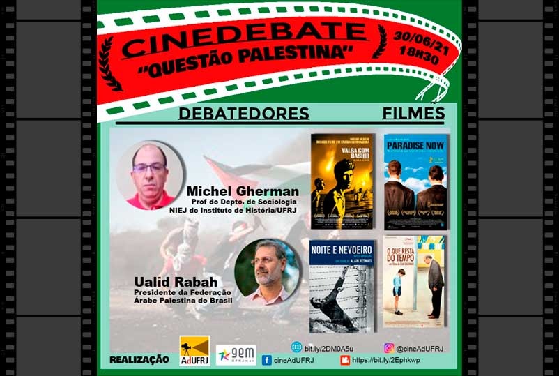 O cineclube não foge de temas polêmicos. A próxima sessão, no dia 30, às 18h30, vai debater a questão palestina com Michel Gherman, historiador, professor e coordenador do Núcleo Interdisciplinar de Estudos Judaicos da UFRJ e Ualid Rabah, presidente da Federação Árabe Palestina do Brasil.,