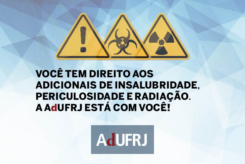 Na próxima segunda-feira (19), a AdUFRJ se reúne mais uma vez com a reitoria para tentar buscar caminhos, pela via administrativa, que resolvam o problema dos adicionais ocupacionais (insalubridade, periculosidade e radiação ionizante). A reunião é fruto da articulação entre a AdUFRJ e o Sintufrj. Muitos professores e técnicos da universidade nunca receberam os valores devidos, outros deixaram de receber ao mudarem de lotação ou função – mesmo continuando em atividades com grau de exposição a agentes nocivos. Há, ainda, os que estão com processos parados por falta de equipamentos de medição.