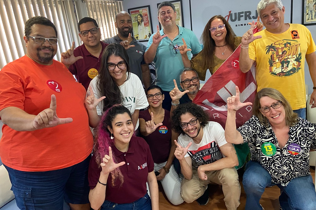 A AdUFRJ fez o L desde julho deste ano e intensificou suas ações políticas pela candidatura do presidente Lula na medida em que avançava a campanha eleitoral. Na mesma urgência de quem tem tudo a perder e com a alegria de quem acredita que verá ‘a manhã renascer e esbanjar poesia’, os professores da UFRJ fortaleceram a atuação em defesa da democracia e pelo único candidato capaz de derrotar Bolsonaro nas urnas. A certeza de que a universidade não sobreviverá a um segundo governo autocrático guiou a diretoria em todas as ações desenvolvidas, especialmente nos últimos três meses.