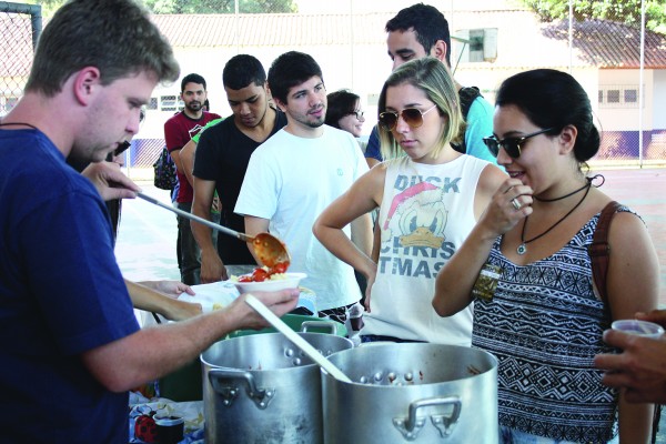 “A gente só consegue comer aqui porque os servidores cedem o aparelho de micro-ondas deles. O que nós tínhamos já estragou”, conta Felipe Coutinho, membro do Centro Acadêmico de Nanotecnologia e um dos organizadores do “ato-almoção”.