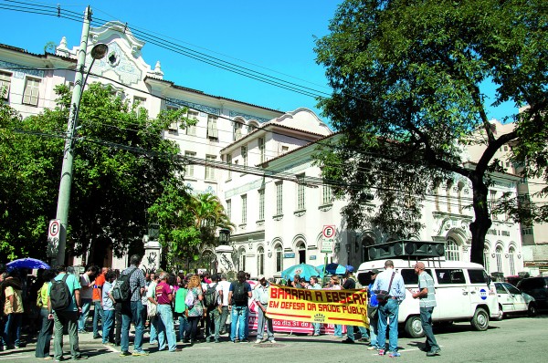 Foto: Marco Fernandes - 31/07/2014Setores da comunidade universitária (Professores, técnico-administrativos em educação e estudantes) da Unirio realizaram, na quinta-feira 31, um dia de mobilização contra a ameaça de privatização do Hospital Universitário Gaffrée e Guinle (HUGG). Em período de férias até o dia 11, o reitor da universidade, Luiz Pedro Jutuca, convocou para o dia 7 de agosto (próxima quinta-feira) uma sessão do Conselho Universitário com o propósito de aprovar a transferência da administração do HU para a Empresa Brasileira de Serviços Hospitalares (Ebserh).