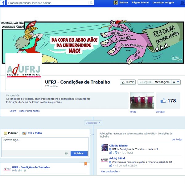 Para acessar esta nova página: https://www.facebook.com/condicoesdetrabalhoufrj.