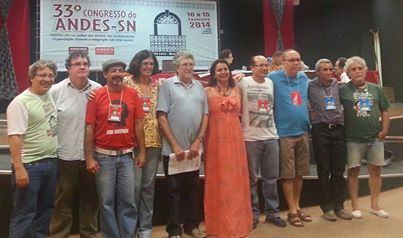 Durante o 33º Congresso do Andes-SN, em São Luís (MA), no último dia 14, foram apresentados os integrantes da chapa “Andes-SN de luta e pela base”, inscrita para a eleição à diretoria do Sindicato (biênio 2014/2016). A votação ocorre em 13 e 14 de maio.