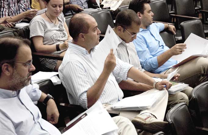 Cristal, Arles e mais 26 novos docentes – que vão reforçar o quadro da instituição na capital e também no campus de Macaé e no polo de Xerém – foram recepcionados pelo pró-reitor de Pessoal da UFRJ, Roberto Gambine. O dirigente observou que eles fazem parte de um novo momento da universidade, pois os concursos públicos praticamente inexistiram durante a década de 90.