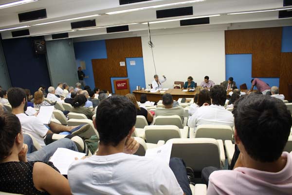 Questionado por um dos estudantes, Feijó refutou o fechamento da emergência do HU: “Temos registro de 1.233 atendimentos no período de agosto a outubro de 2011. Entre agosto e outubro de 2013, com 70% da força de trabalho, foram 678 pacientes atendidos. O que houve foi a diminuição das equipes de cirurgia”, disse. Côrtes afirmou ser objetivo de sua chapa a abertura da emergência: “Realmente, o fato é que se chegar agora na emergência, ela está fechada. Temos pacientes de tratamentos de alta complexidade que só poderiam encontrar o que precisam em uma internação, no Rio de Janeiro, no HUCFF”.