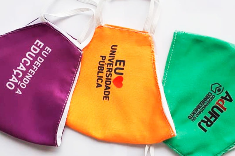 A AdUFRJ distribui um kit de máscaras como brinde para os docentes. Para quem ainda não ganhou, a solicitação pode ser feita por um formulário eletrônico disponível em https://bit.ly/3mjPamI. Cada kit contém três máscaras — nas cores amarela, verde e roxa —, feitas de tecido triplo com TNT, o que confere um alto grau de proteção contra o novo coronavírus.