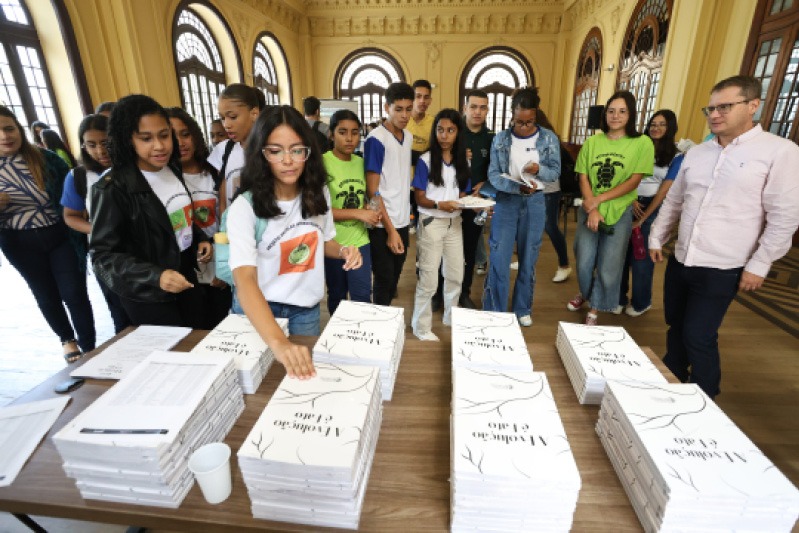 O brilho do olhar de jovens estudantes da Escola Municipal Olga Benário Prestes, de Macaé, iluminou o Salão Nobre do Fórum de Ciência e Cultura da UFRJ na manhã de sexta-feira (20). O evento de lançamento do livro “A evolução é fato”, publicado pela Academia Brasileira de Ciências, reuniu o trabalho de pesquisadores renomados de todo o Brasil com a curiosidade e a sede de saber dos alunos da educação básica.