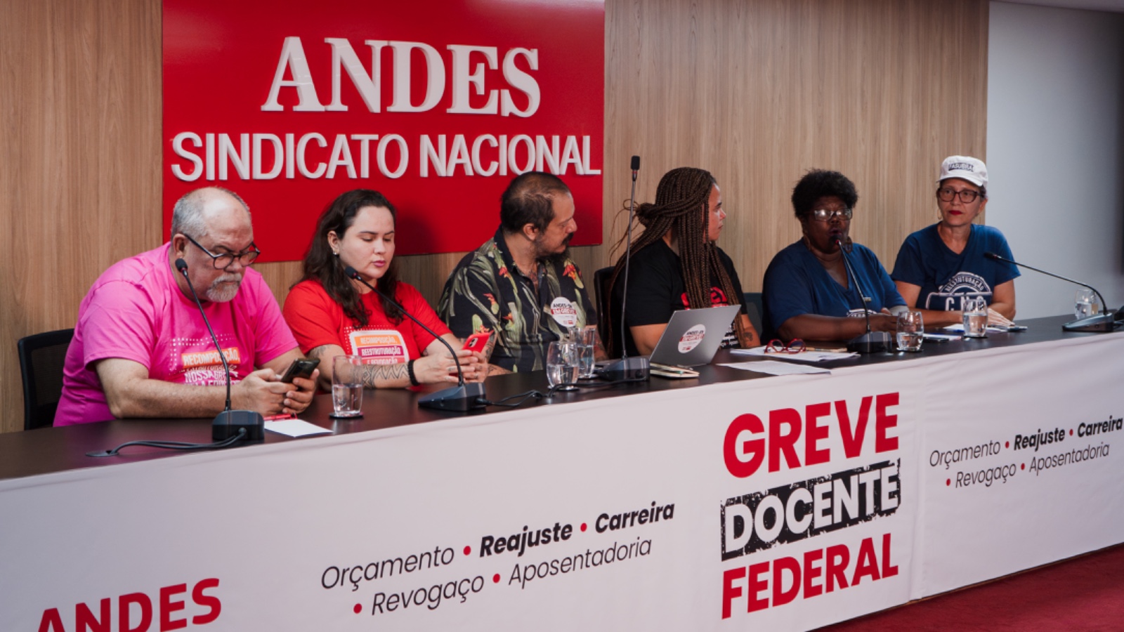 Coletiva de imprensa - Foto: Eline Luz/Andes-SNAo longo desta semana, o CNG do Andes enfatizou a posição de que não aceitará o fim das negociações com o governo e que considera apresentar uma nova contraproposta ao MGI na segunda-feira (27), com base no resultado da rodada de assembleias de suas seções sindicais, ocorrida entre os dias 20 e 24. Mas a posição do governo, exposta na mesa de negociação de 15 de maio, é que sua proposta é final e que aguarda as entidades sindicais no dia 27 para formalizar o acordo.