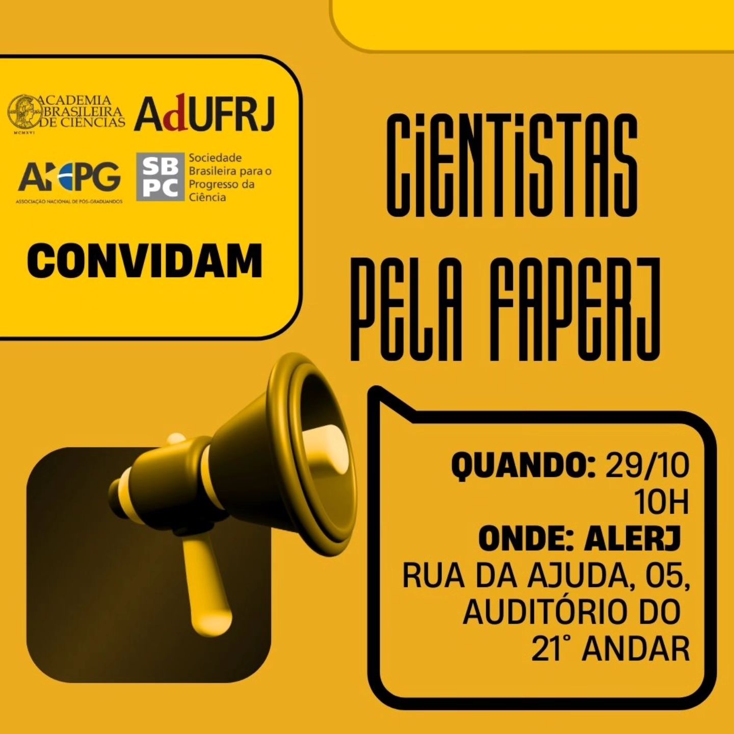 Pesquisadores do estado do Rio de Janeiro convidam para a reunião "Cientistas pela FAPERJ", nesta terça-feira, 29, às 10h.