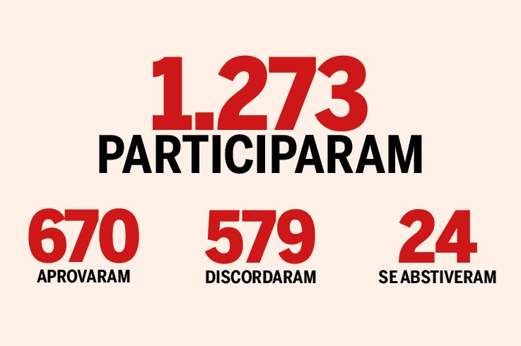 A assembleia foi híbrida, com presenças física e em ambiente remoto. Participaram da primeira fase de discussões, no dia 22, 161 professores. Logo após os debates, as urnas virtuais foram abertas à consulta dos docentes. A votação aconteceu pelo sistema Helios durante 24 horas: das 17h30 da quarta-feira, 22, às 17h30 da quinta, 23.
