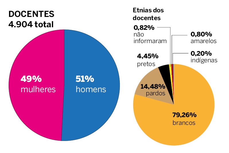 O último indicador relevante no estudo é o de inclusão. A maior universidade do Brasil tem apenas 29 docentes com alguma necessidade especial, sendo nove deficientes auditivos.