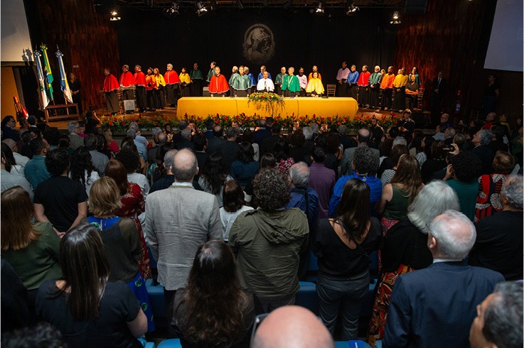 A cerimônia foi concorrida. Representantes do Executivo, do Legislativo, do Judiciário, reitores de universidades públicas e privadas do Rio de Janeiro e de outros estados, dirigentes de agências de fomento, ex-reitores da UFRJ, músicos, cientistas, estudantes, professores, técnicos. Era grande a representatividade da plateia. Os 500 lugares do auditório do CT, no Fundão, não comportaram as mais de 800 pessoas confirmadas para a solenidade.