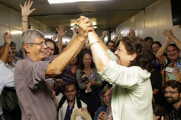 Roberto Medronho e Cássia Turci comemoram o resultado - Foto: Fernando SouzaO professor Roberto de Andrade Medronho é o reitor eleito da UFRJ. Até o fechamento desta edição, com a totalidade das urnas eletrônicas apuradas, restando apenas computar os votos em separado, a chapa de Medronho e de sua vice Cássia Turci havia conquistado uma vitória irreversível contra a chapa 20, dos professores Vantuil Pereira e Katya Gualter. A resposta das urnas, após três dias de eleição, não deixa dúvidas sobre o caminho escolhido pela comunidade acadêmica para os próximos quatro anos. Medronho e Cássia venceram com larga margem entre os professores — até o fechamento desta edição eram 2.073 votos, contra 794 de seus oponentes. Entre os técnicos, a dupla de professores titulares foi também bem votada, perdendo apenas no segmento estudantil. “Foi uma vitória da democracia. As divergências foram discutidas num processo muito respeitoso. Quero agradecer não só aos nossos eleitores, mas também aos professores Vantuil e Katya, pelo debate franco. Agora é hora de estarmos unidos em torno do fortalecimento da UFRJ”, disse o professor Roberto Medronho após a última urna eletrônica, a de docentes do Museu Nacional, ser totalizada. O candidato derrotado, Vantuil Pereira, reconheceu a vitória de seu oponente: “Foi um processo dos mais democráticos e participativos da universidade. Temos compromisso, sim, de mostrar as diferenças, mas respeitaremos o resultado. Ainda que tenhamos diferenças, desejo sucesso ao professor Medronho, porque o sucesso dele é o sucesso da UFRJ”, disse o professor. A abstenção entre alunos foi alta: quase 80% não compareceram às urnas. O comparecimento dos técnicos ficou em torno de 50%. Já entre os professores, onde a consagração da chapa 10 foi cristalina, o comparecimento às urnas chegou a 70%.