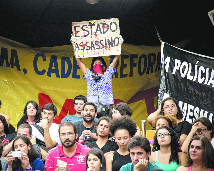 Ao som do batuque dos blocos “Nada” e “Canjerê”, este da Maré, os manifestantes subiram as escadarias do prédio da Uerj com palavras de ordem. Dentre elas: “Cabral, bandido, cadê o Amarildo?”. Segundo informações da Ordem dos Advogados do Brasil (OAB), de 2007 até agora, desapareceram 35 mil pessoas só no Rio de Janeiro.